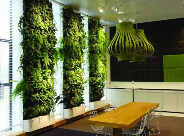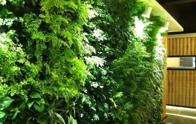室内植物墙是在迎合人们生存环境的基础上来营建的,植物墙首要的既定环境要素为植物墙地点环境的光线、湿度、温度、空气的活动性,其间光线的控制和调控需要结合实际的植物以及环境对色温、光照度概括来分配。