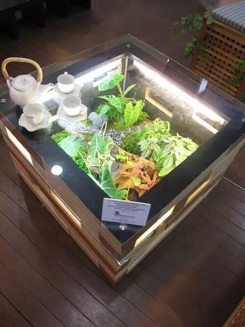 不管容器怎么变,种植物的规律始终是不变的,那就是需要根据植物的生活习性来选择植物种类,主要问题就是光照,室内的茶几一般来说光照都不太好,所以需要较多的人工补光。